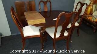 Lot #0001: Beautiful Vtg. Mahogany Dining Table & Chairs