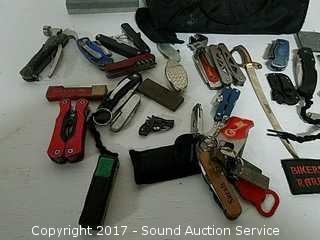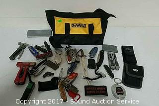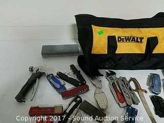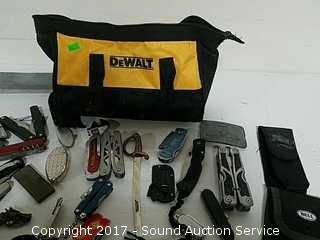 Lot #0217: Dewalt Toolbag Loaded w/Knives & Multi-Tools