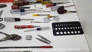 Includes: crescent wrenches, Craftsman screwdrivers and others, scrapers, punches, nail bar and more.