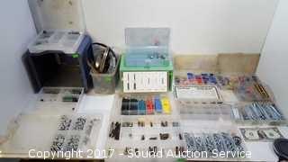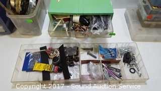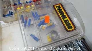 Loaded with various hardware, shrink tubes, pipe clamps, eye hooks, bit sets, nuts, assortment of wire terminals, screws & more.