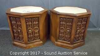 Lot #0009: Pair of Vtg. Marble Top Octagon Side Table