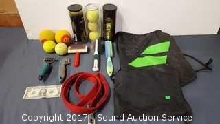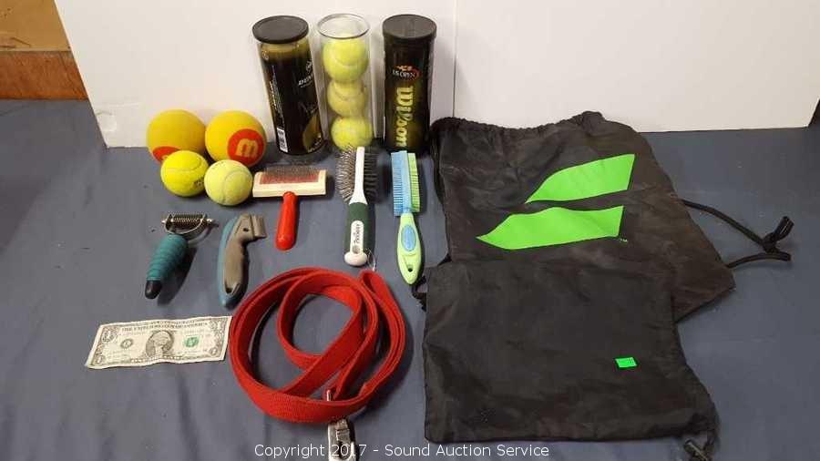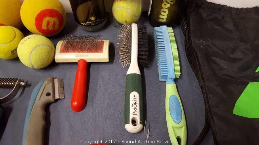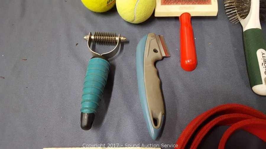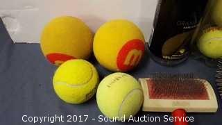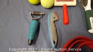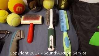 Lot #0058: Pet Care Brushes, Leash, And Tennis Balls