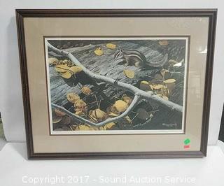 Museum quality framed and matted, Image of a chipmunk in forest. Pencil signed and numbered #267/1000. Approx 22" x 27-1/2"