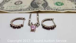 Lot #0225: Sterling Silver & Garnet Earring w/Necklace