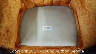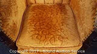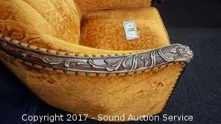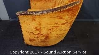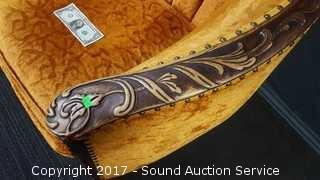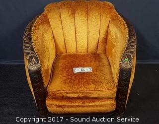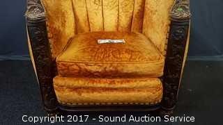 Lot #0004: Unique Vtg. Hi-Line Carved Orange Arm Chair