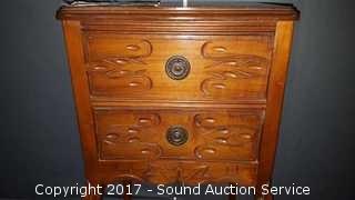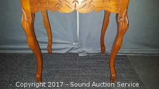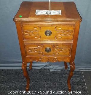 Lot #0008: Vtg. Carved Solid Wood 2 Drawer Side Table