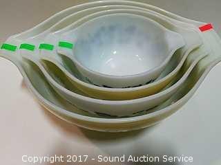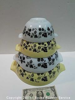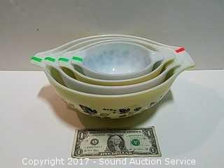 Lot #0302: Vtg. Pyrex Gooseberry Nesting Mixing Bowls