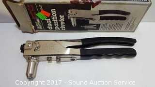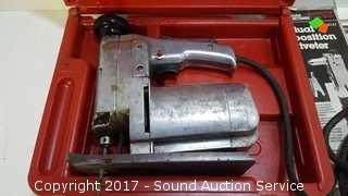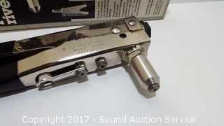 With tilting foot, aluminum construction & case. Riveter comes with box.