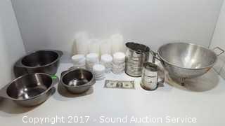 Lot #0080: Vtg. Star Colander, Mixing Bowls, Sifters & More