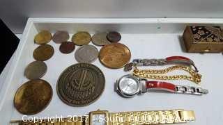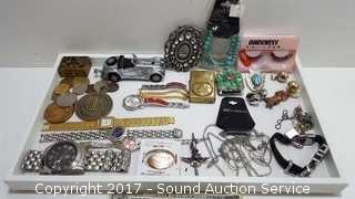Stunning Antique Leaded Glass Curio Cabinet, Custom Vtg. Hi-Line Carved Davenport with Matching Chairs, Husky 60 Gal Air Compressor, Beautiful Antique Embroidered Cloth RCA Speaker Box, Gorgeous Antique Console Table, Tons of Quilting and Sewing Fabrics, Supplies & Literature, Adorable Wrought Iron Patio Set, Yard Art Bird Bath, Gorgeous Vtg. Harmony House Bedroom Set, Collectible Coins, Stamps, Misc. Hardware, Tools, Fantastic Handmade Dollhouse, Military Clothing, Majestic 77" Tuna Sculpture, Huge Area Rug, Military Apparel, Fashion Jewelry, Toys, Games, Collectors Spoons, Vintage Glass, Art Glass, Artwork, Sports Cards, Kinkade Calendar & so much more!!!