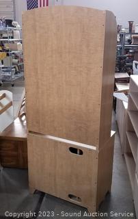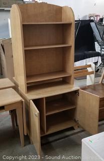 Lot #0033: 2pc Lane Maple Computer Cabinet w/Bookcase Topper