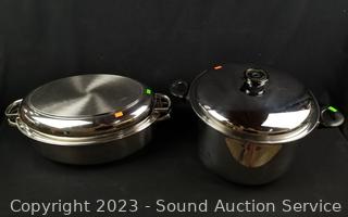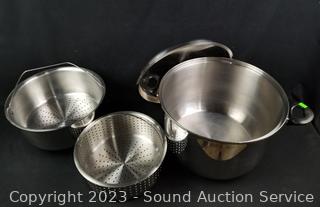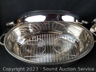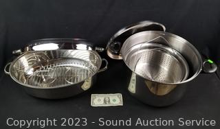 Lot Details: Healthy Cooking 10" & 12" inserts 8" x 14" boiling pots, Professional Platinum 17" roaster w/rack,
