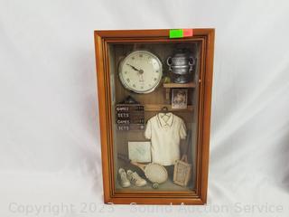 Lot Details: Cap w/clock, nautical bait shop clock 12.5" x 5.5" x 2.5" & tennis shadow box display clock. 12" H x 7.5" W x 4" D.