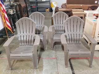 Lot #0009: 4 Gray & 2 Red Plastic Adirondack Patio Chairs