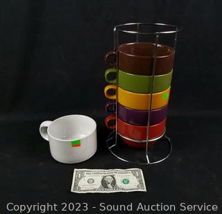 Lot #0197: 6 Large Coffee Mugs w/Rack