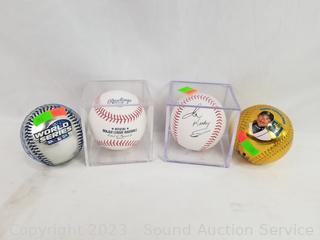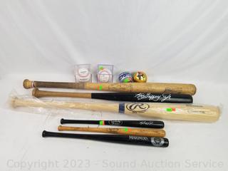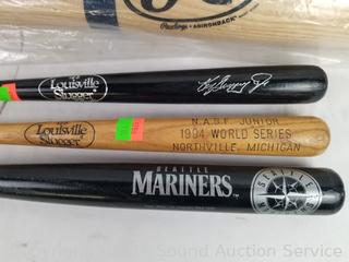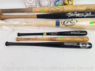 Lot Details: 4 Louisville Slugger bats, Seattle Mariners & Rawlings bats, 16" to 34" long. Seattle Mariners, 2004 World Series, Autographed Crystal Executives league ball, Standard Rawlings ball. Refer to photos for more info.