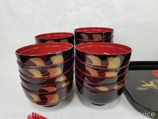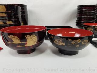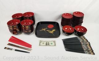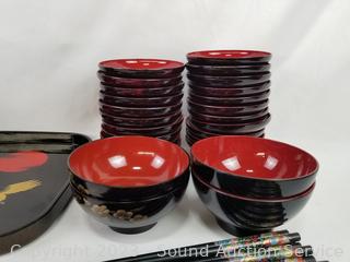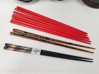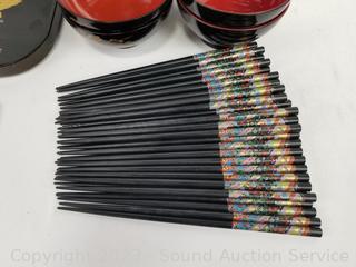 Lot #0086: Assorted Enamel Asian Bowls & Chopsticks