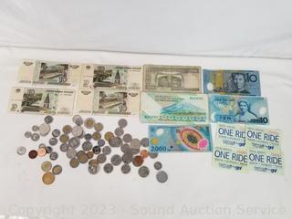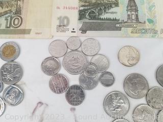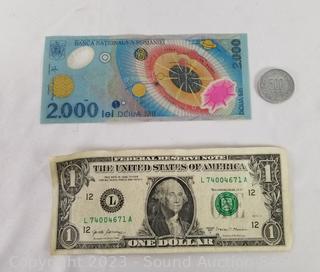 Lot Details: 4 $10 Russian Rubles, 2 $10 New Zealand & Australia notes, Iranian Notes, Netherlands coins, US coins, Mexico coins, Foreign 2.000 Romania Lei Bank Note & 500 Lei Coin. Refer to photos for more info. ATTN: We are not coin or currency experts or graders, please use your own judgement when bidding.