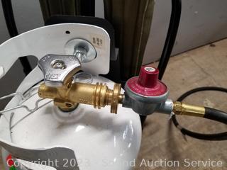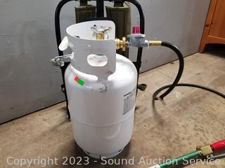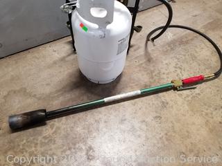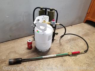 Lot Details: Comes with 13.9lb tank, brush torch and back pack. Tank feels like it has some fuel.
