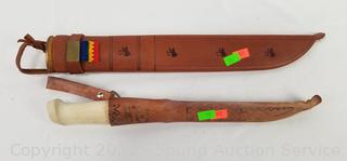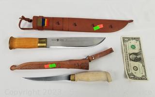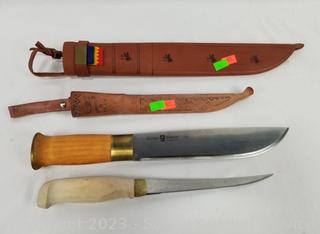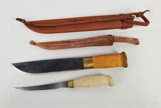 Lot Details: Both with sheathes. Made in Norway & Finland. 12.5" fixed blade knife w/8" blade. Don't see any major issues.