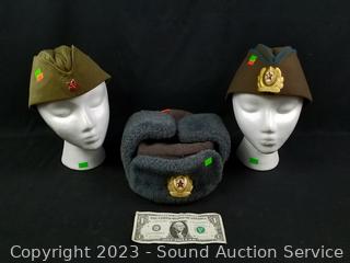 Lot #0148: Soviet Union Army Ushanka & 2 Caps