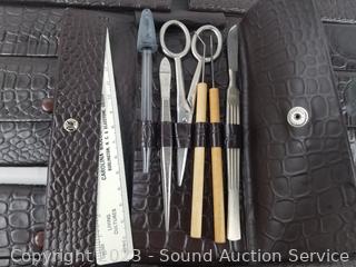 Lot Details: Each have ruler, scalpel, scissors, dropper, tweezers, picks.
