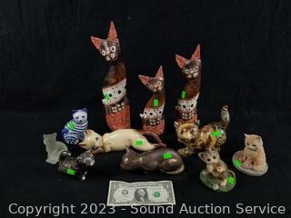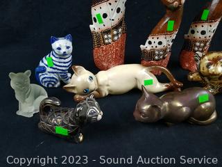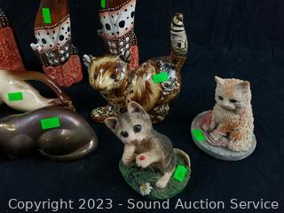 Lot Details: Porcelain, pottery, textile, brass, composite, wood construction. Approx. 3" to 13" tall, 4" to 10" long.