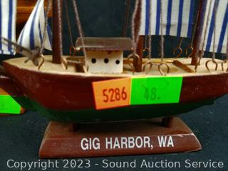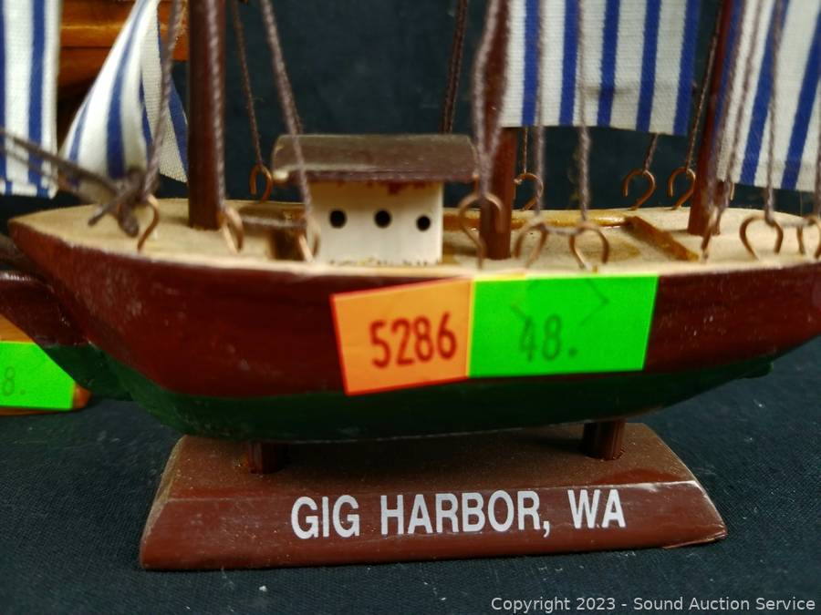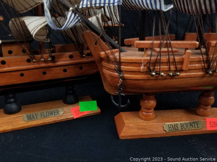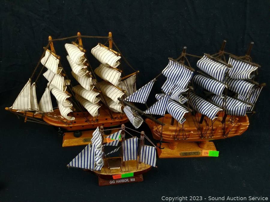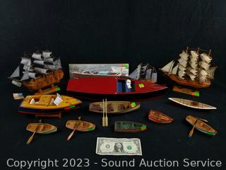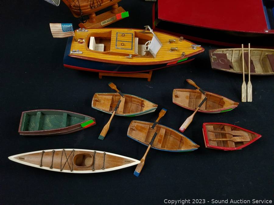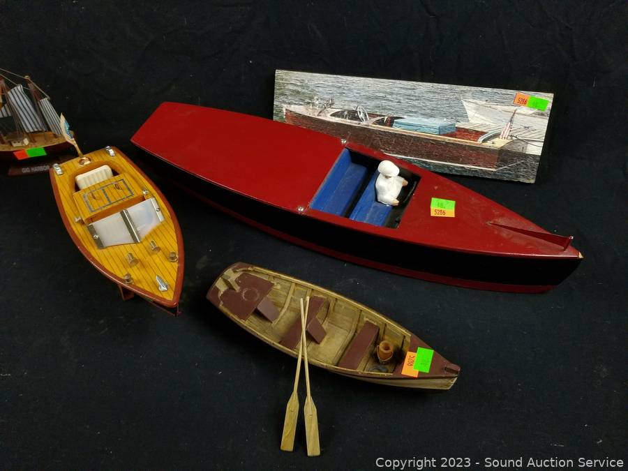 Lot Details: Approx. 4.75" to 18" long. Also comes with boat scene painted on wood. See a chip on the front of largest boat.