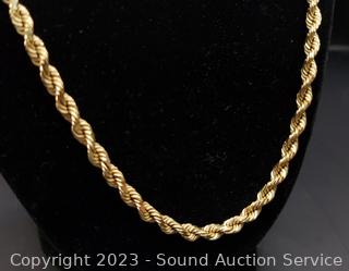 Lot #0003m: 14K Gold 22" Rope Chain Necklace TW: 31.5g