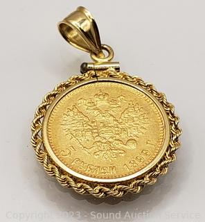 Lot #0002m: 1899 Russia 5 Roubles Gold Coin w/14K Bezel