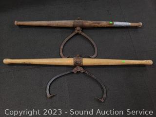 Lot #0224: 2 Peavy Log Rollers & Splitting Axe w/Sheathe