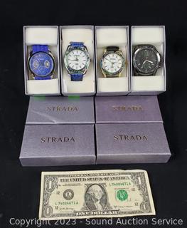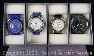 Lot Details: All appear unused, come with original boxes, still have battery tabs. Black/green, rose gold/paua shell, stainless/paua shell, chrome/blue.