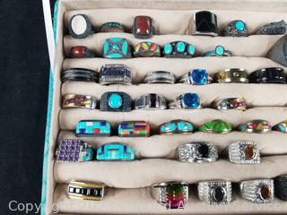 Lot #0178: 50 Mixed Metal Rings w/Ring Case