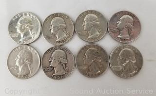 Lot #0263: (8) 1941-1958 90% Silver Washington Quarters