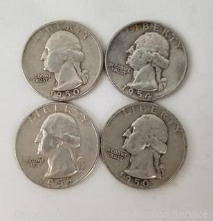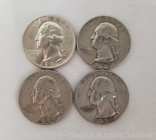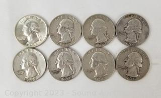 Lot #0264: (8) 1950-1958 90% Silver Washington Quarters