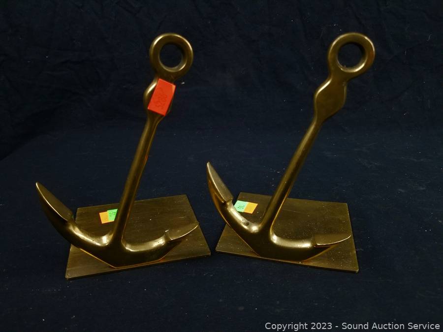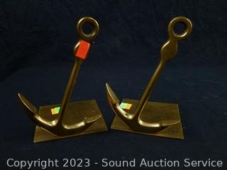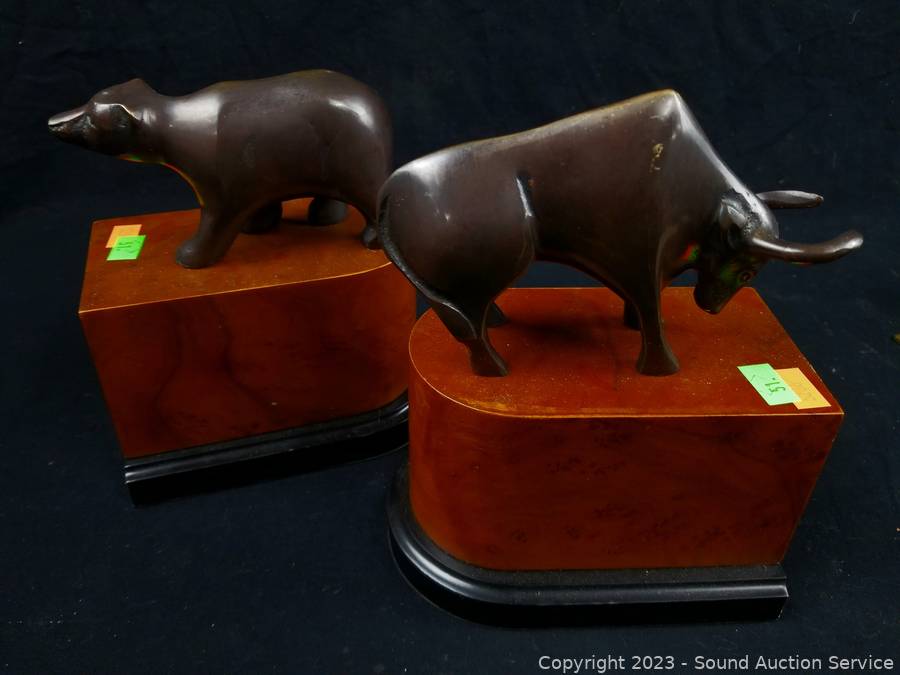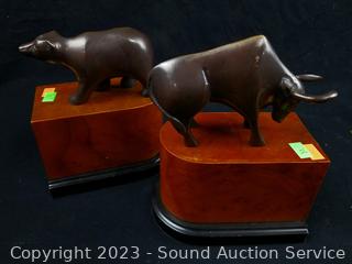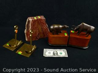 Lot #0051: Anchor, Stone & Metal Bear & Bull Bookends