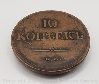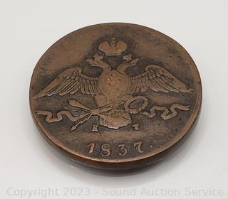 Lot #0020m: Antique Copper 1837 10 Kopeks Russian Coin