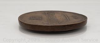 Lot Details: Solid copper, slight thicker on one side than other, in great condition given it's age. ATTN: We are not coin or currency experts or graders, please use your own judgement when bidding.