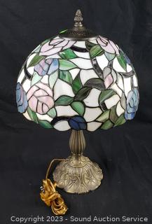 Lot #0212: Art Nouveau Leaded Stained Glass 19" Table Lamp
