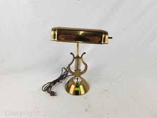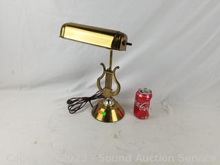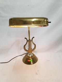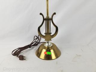 Lot #0086: Brass Lyre Desk Lamp - Works