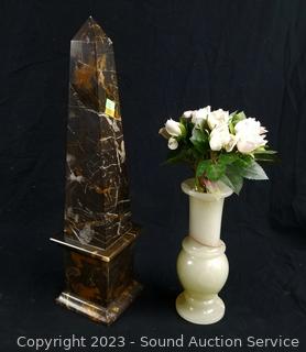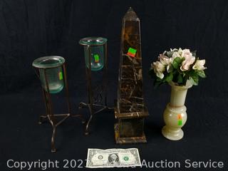 Lot #0195: Candle Votive, Marble Pillar & Quartz Stone Vase