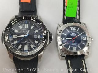 Lot Details: Both working as intended, automatic kinetic driven. Vostok is 32 jewel, Citizen is 300m, has a broken band. Otherwise both in great condition.