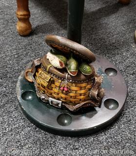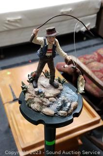 Lot Details: With composite image of fisherman & fishing creel. 47" tall. Holds up to 6 rods.