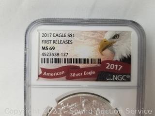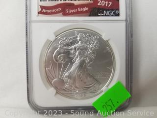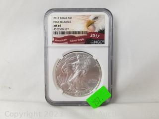 Lot #0257: Graded MS69 2017 1oz Fine Silver Eagle $1