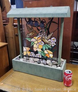 Lot #0032: Lighted Stained Glass Hummingbird Water Fountain