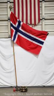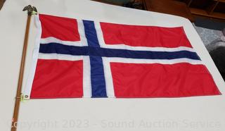 Lot #0233: Norwegian Flag w/10ft Flag Pole & Base