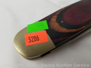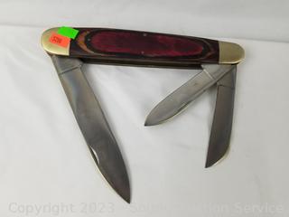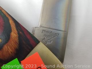 Lot Details: Large 3 blade Frost Cutlery knife 14.5" long, 3.25" to 5.5" blades. Don't see any major issues. Winchester knives are sealed.