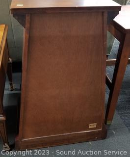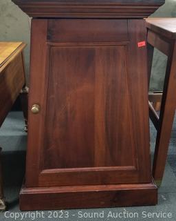 Lot Details: 31" H x 15.75" to 21" W x 15.75" D. In great condition, well made, solid wood construction.