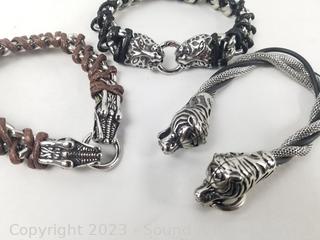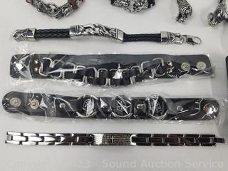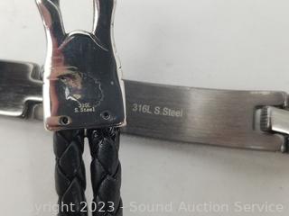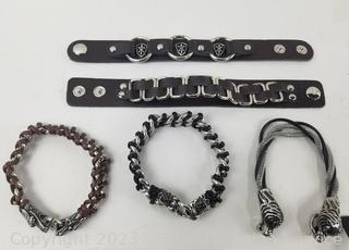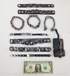 Lot #0245: Stainless & Leather Gothic Style Bracelets