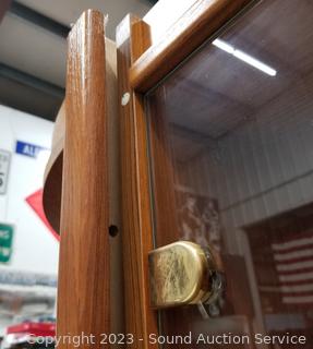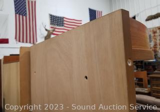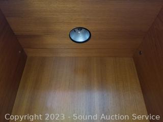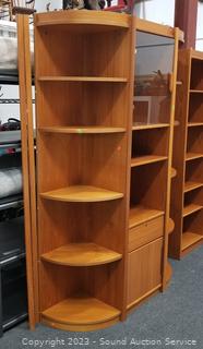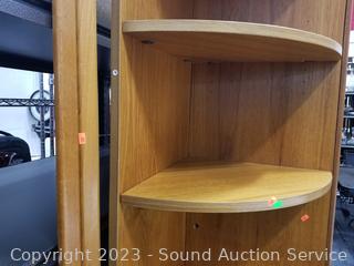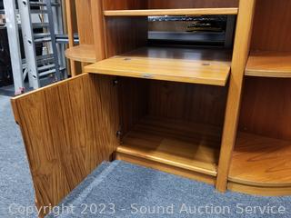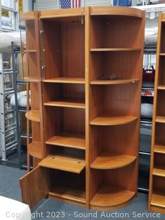 Lot #0002: Teak Veneer Finish 3pc Cabinet, Corner Shelf Set